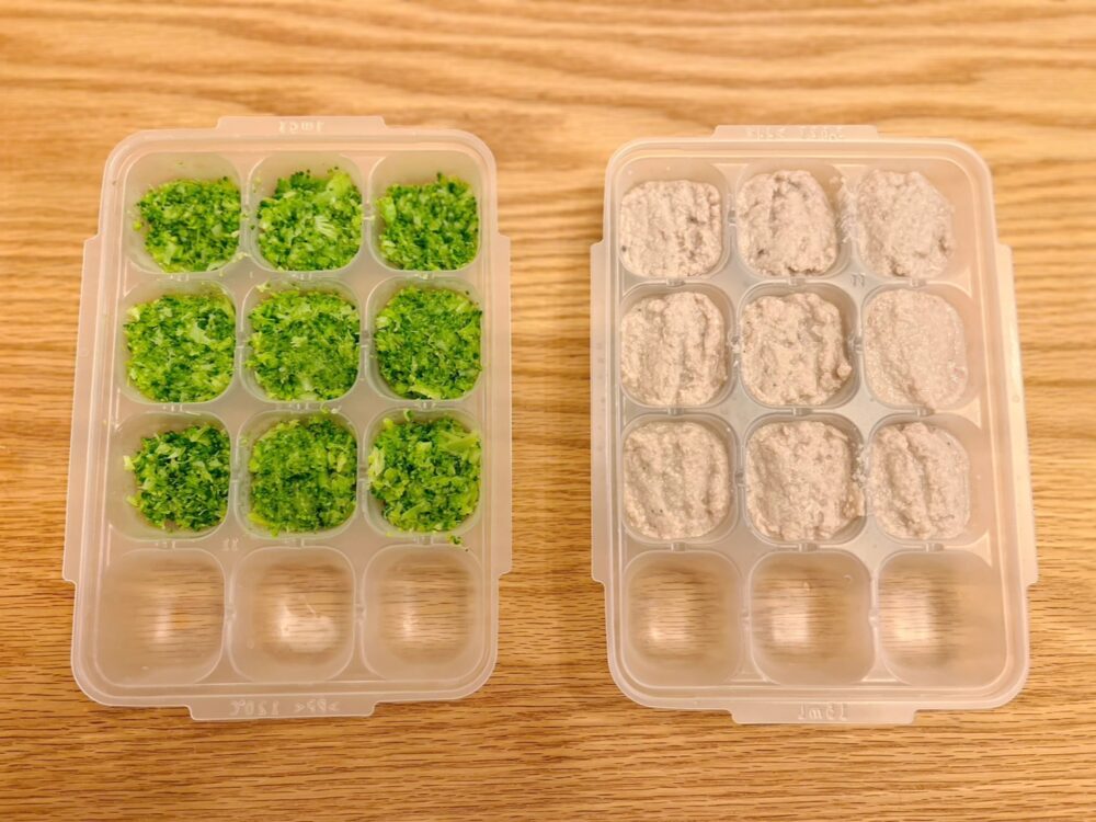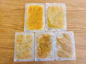 解凍するとこんな感じ。離乳中期になると見た目も「ごはん」感が出てきました♪